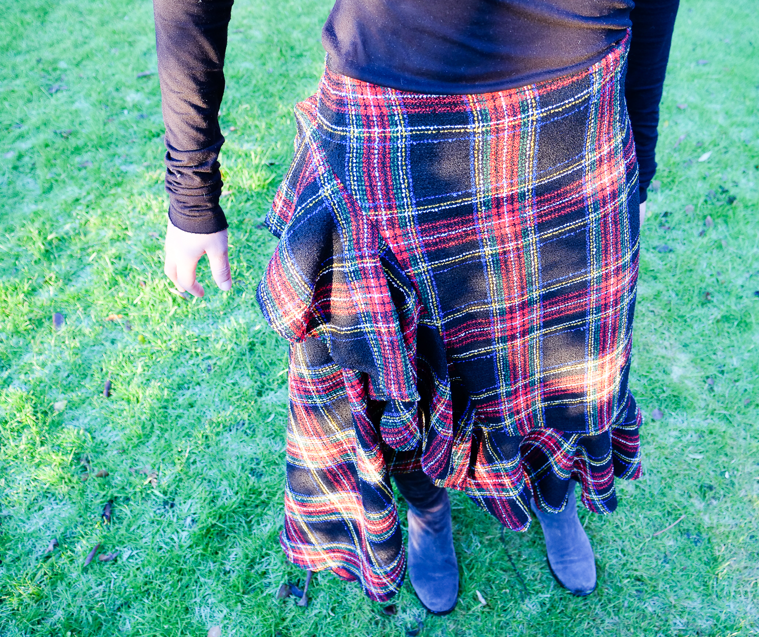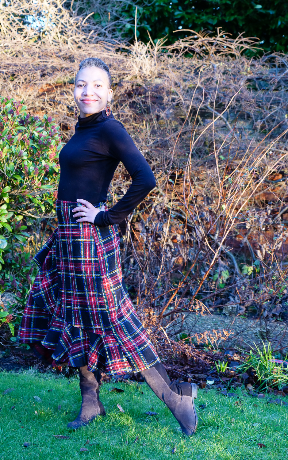 I managed to finish the skirt in the nick of time on Christmas Eve and was able to wear it on Christmas morning paired with my black BurdaStyle roll neck top. A fetching combo that I felt good in.